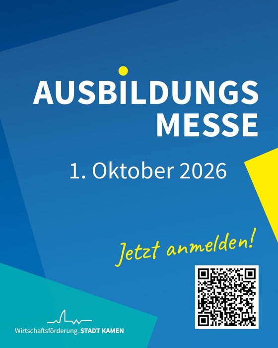 Haben Sie Ausbildungsplätze in Kamen oder naher Umgebung zu besetzen? So nutzen Sie die 3. Kamener Ausbildungsmesse am, 01.10.2026, von 10 - 14 Uhr im Schulzentrum Gutenbergstr. 2 in Kamen, um Ihr Unternehmen vorzustellen.